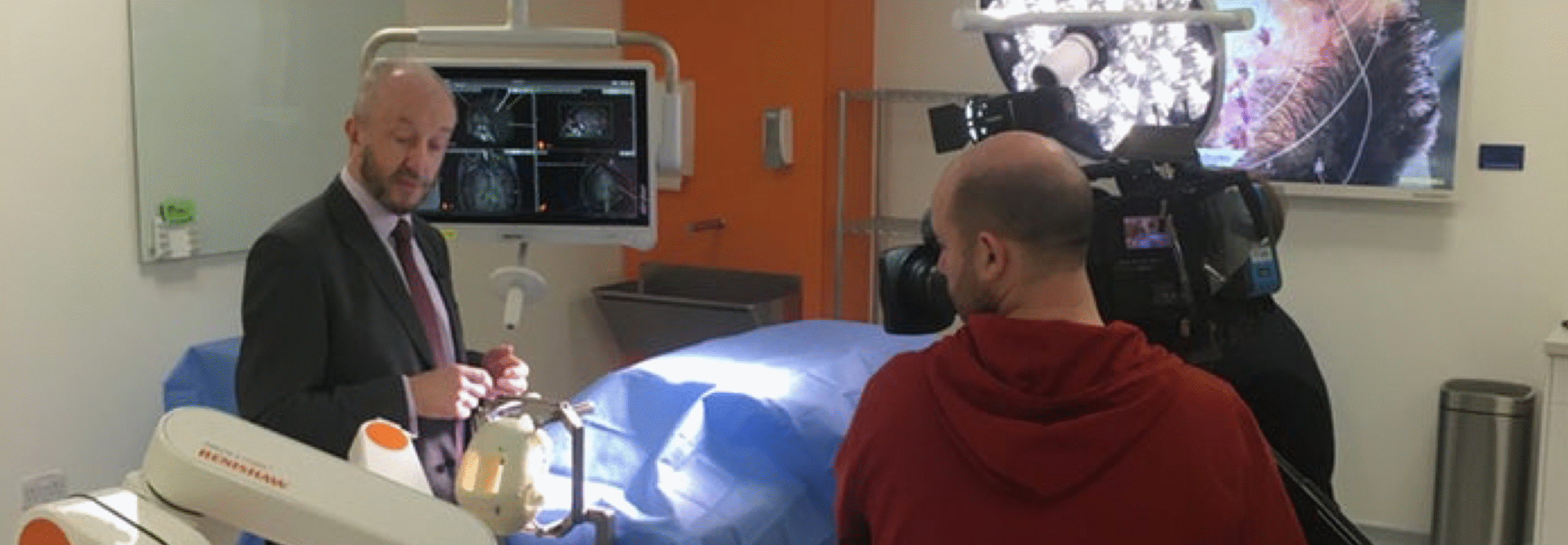 The ‘neuromate’ robot, named by creators Renishaw, a world-leading engineering and scientific technology company, assisted Prof. Gray during the surgery while he used intracerebral electrodes to measure electrical signals in the brain.