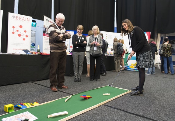 Participants were invited to play a game of golf and attempt to get a hole in one, overcoming obstacles to get the ball into the striatum at the end, recording how many shots it took to sink the ball into the hole.