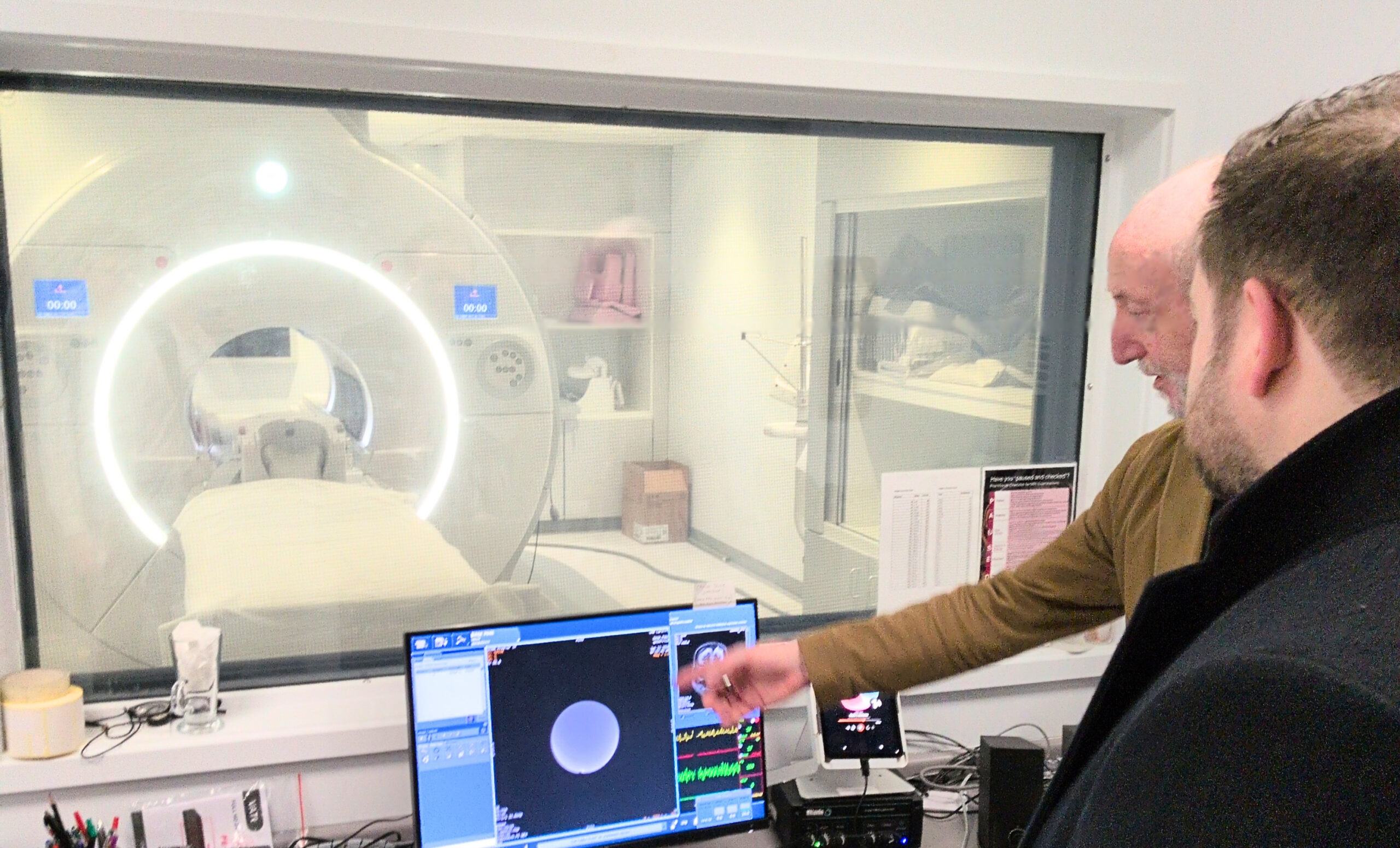 The Advanced Neurotherapies Centre team showed Stephen Doughty around the Advanced Neurotherapies Centre Neuro Theatres at the University Hospital Wales and explained the work of the centre from the research to the clinical trials. The team showed Stephen Doughty the MRI scanner and explained how the technicians, clinical team, and neurosurgeon Professor Liam Gray use the MRI scans to map where they will safely and effectively deliver the Advanced Therapy Medicinal Products (ATMPs) to the brain.