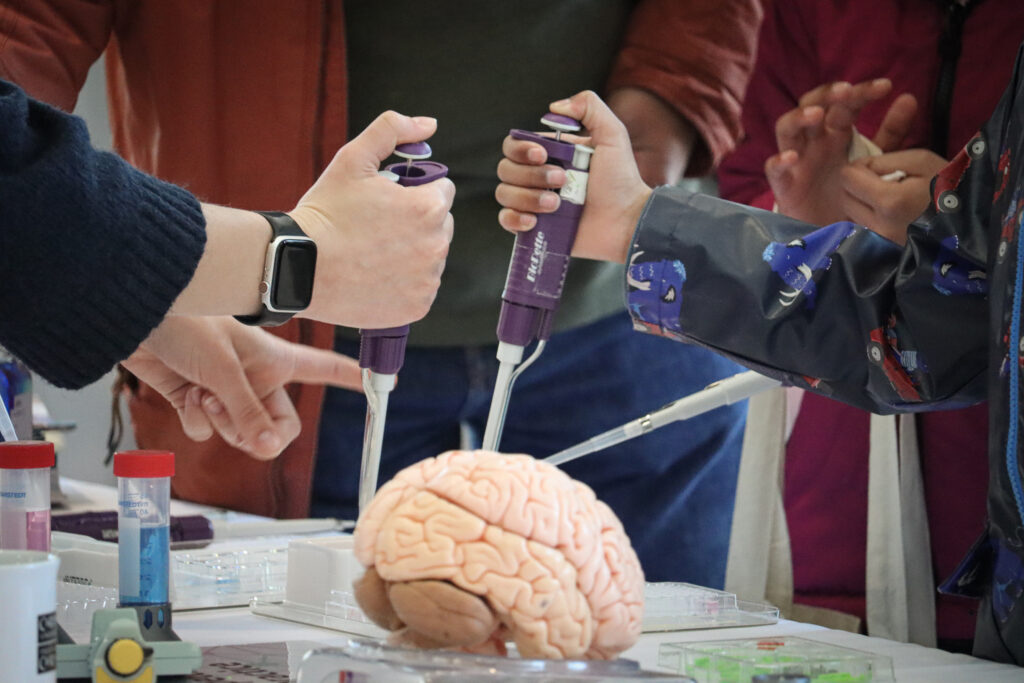 Cafodd y mynychwyr gyfle i brofi ac ehangu eu gwybodaeth am ymchwil iechyd yr ymennydd trwy amrywiaeth o stondinau rhyngweithiol a gemau sy’n gysylltiedig â’r ymennydd a gynhaliwyd gan ganolfannau o bob rhan o Adran Meddygaeth Seicolegol a Niwrowyddorau Clinigol ym Mhrifysgol Caerdydd.