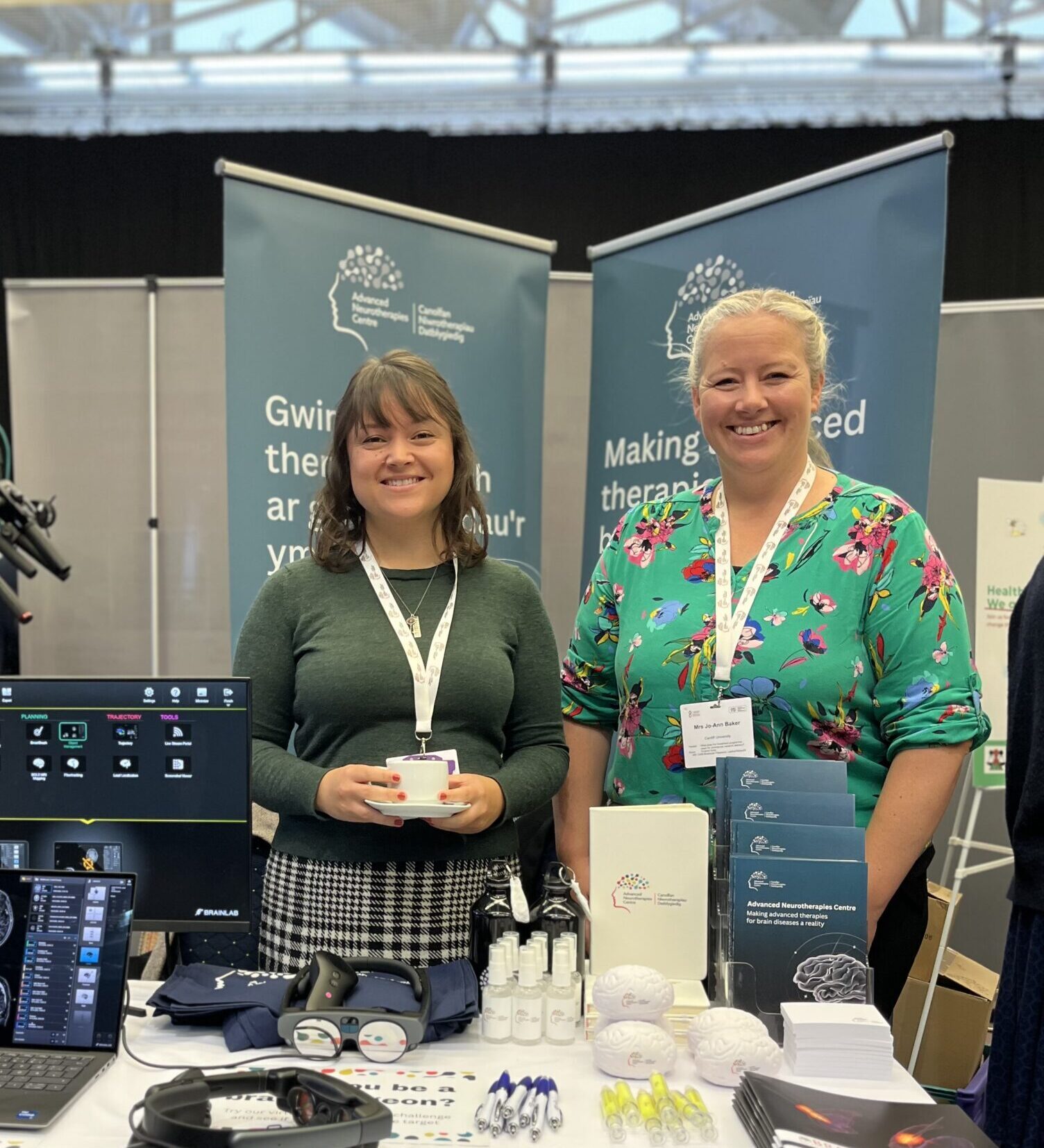 “Roedd yn wych bod yn rhan o gynhadledd eleni. Roedd yn hyfryd cysylltu â chynifer o bobl a oedd yn frwdfrydig am ein llwyddiant diweddar wrth gyflwyno’r therapi genynnau yn rhan o’r treial clinigol llwyddiannus ar glefyd Huntington. Fe wnaeth y sawl oedd yn bresennol fwynhau roi cynnig ar gynnal eu niwrolawdriniaeth eu hunain ar stondin y Ganolfan Niwrotherapïau Uwch – roedd y gweithgaredd ymgysylltu newydd gyda Brainlab yn llwyddiant ysgubol!”